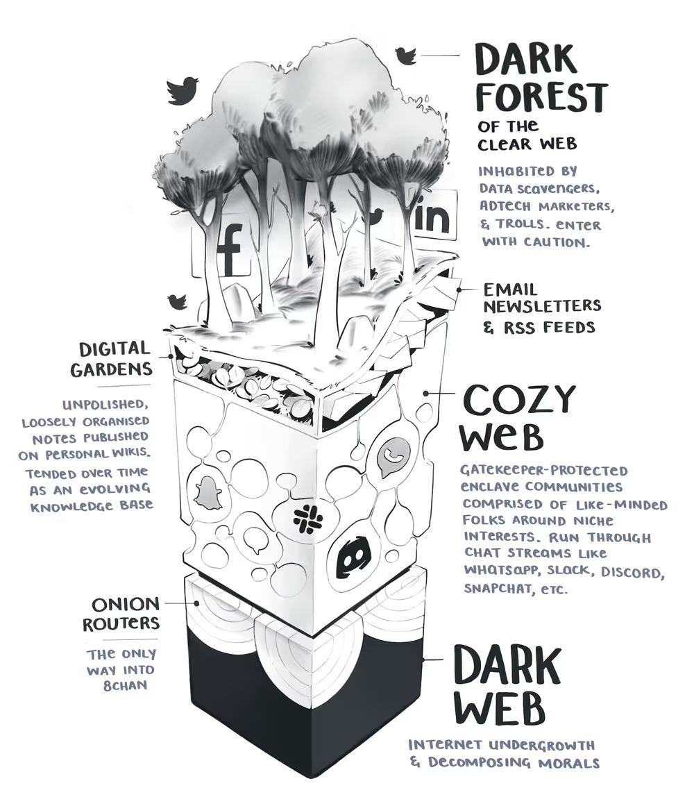 Maggie Appleton의 Dark Forest Theory. Image Credit: maggieappleton.com