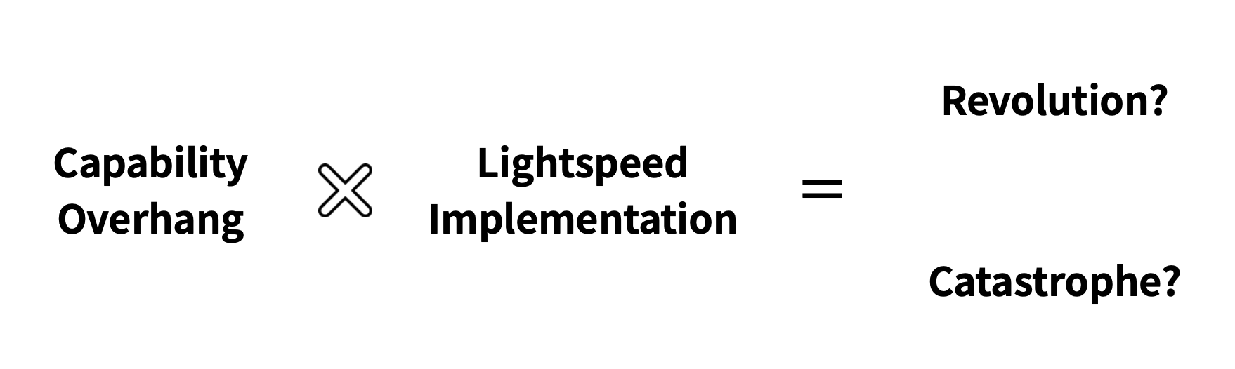 다시 말하면, 기술적인 자산과 잠재력은 이미 충분히 쌓여 있고 (Capability Overhang), 구현의 속도 또는 사실상 빛의 속도처럼 빨라지고 있기 때문에 (Implementation Speed), 여러분이 아침에 모닝 커피를 마시다가도 자칫 한 번의 실수로 세상을 불태워버릴 수 있는 단계에 와 있다는 겁니다.