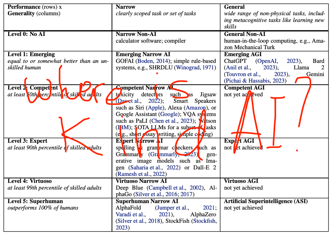 논문에서, “강력한 AI 시스템이 언제 개발될지 시점은 아주 불확실하지만, 2030년까지는 이런 시스템이 개발될 가능성이 있다고 생각합니다”라고 이야기하고 있구요. 그리고 ‘Position: Levels of AGI for Operationalizing Progress on the Path to AGI’같은 논문을 통해서, AGI가 어떤 단계로 달성될 것인지에 대해서도 많은 의견을 내고 있습니다.