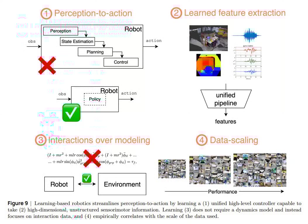 기존의 방식은 복잡한 시뮬레이터, 커스텀 플래너, 모듈형 파이프라인에 의존했지만, 학습 기반의 로봇은 경험으로부터 직접 학습하면서 인지부터 제어까지를 하나의 파이프라인으로 통합합니다.