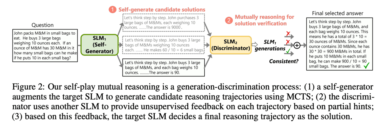 지난 주에 ‘마이크로소프트 리서치 아시아’와 하버드 대학교의 연구원들이 함께 발표한 따끈따끈한 논문에서 ‘rStar’라는 기법을 소개하고 있는데요, 이건 SLM - 소형언어모델 - 에 파인튜닝을 하거나 SLM을 보완해줄 대형언어모델을 사용하지 않고서도 추론 능력을 상당히 높여주는 ‘Self-play muTuAl Reasoning’ - 그래서 rStar - 이라는 이름의 기법이예요.