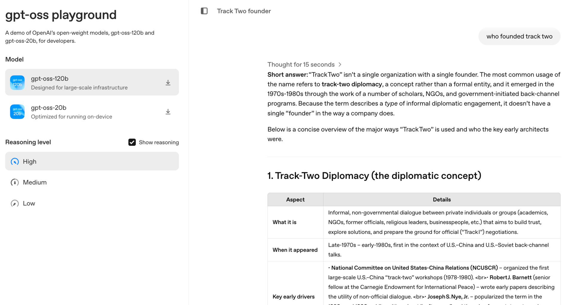 gpt-oss는 전반적으로 1년 전의 파운데이션 모델 비슷한 느낌이지만, 더 잘 다듬어져 있고 로컬에서 실행할 수 있는 텍스트 전용 모델 중에서는 가장 강력한 축에 속합니다. 그리고 이제 이걸 리믹스할 수 있게 된 거죠. 작은 모델들이 점점 더 강력해질 거라고 예상은 했지만, 4년 된 제 노트북에서 두 가지 공개 모델 중에 작은 모델을 실행할 수 있다는 점은 여전히 놀랍습니다.