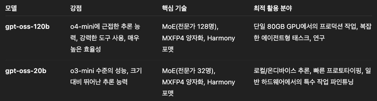 오픈AI가 공개한 GPT-OSS는 두 가지 버전의 모델이 있습니다: