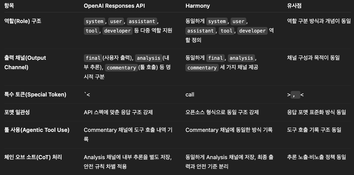 더불어, Harmony는 오픈 가중치(Open-Weight)의 세계에서는 다소 새로운 개념들을 도입하기도 했습니다: