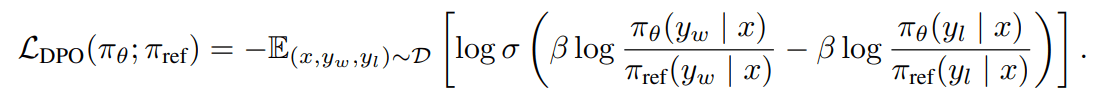 결국, 목표는, πθ 모델이 사람이 선택한 응답을 선호하도록 훈련하되, 베이스라인 모델(πref)에서 너무 멀어지지 않도록 하는 것입니다.