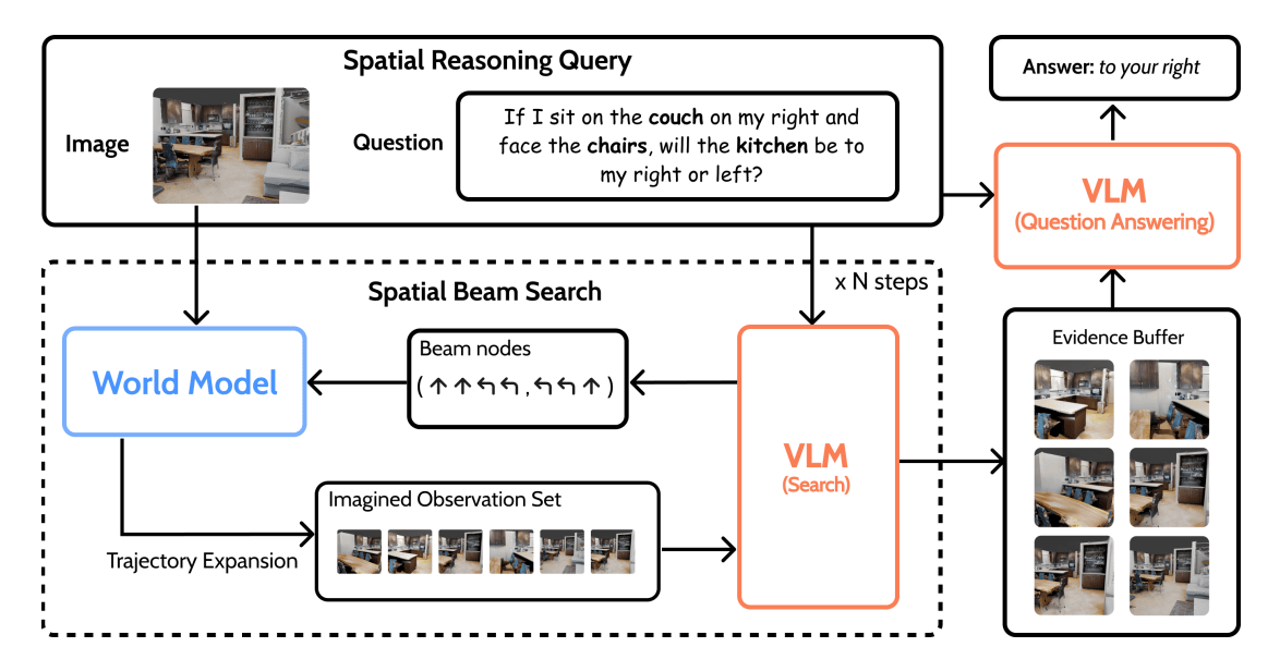 매사추세츠 대학교 애머스트 캠퍼스, 마이크로소프트 리서치, JHU, HKUST, 그리고 하바드의 연구자들은 최근 연구 ‘Test-Time Scaling with World Models for Spatial Reasoning’에서 다음과 같은 아이디어를 제시했는데요. 바로, 테스트 타임(Test-Time)에서 2D 이해(Understanding)에 3D 이해 능력, 즉 공간 지능(Spatial Intelligence)을 추가하는 겁니다.